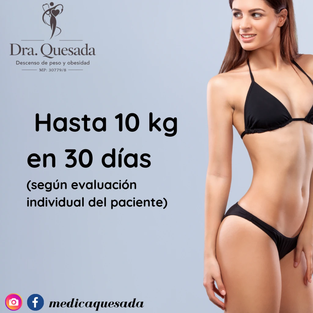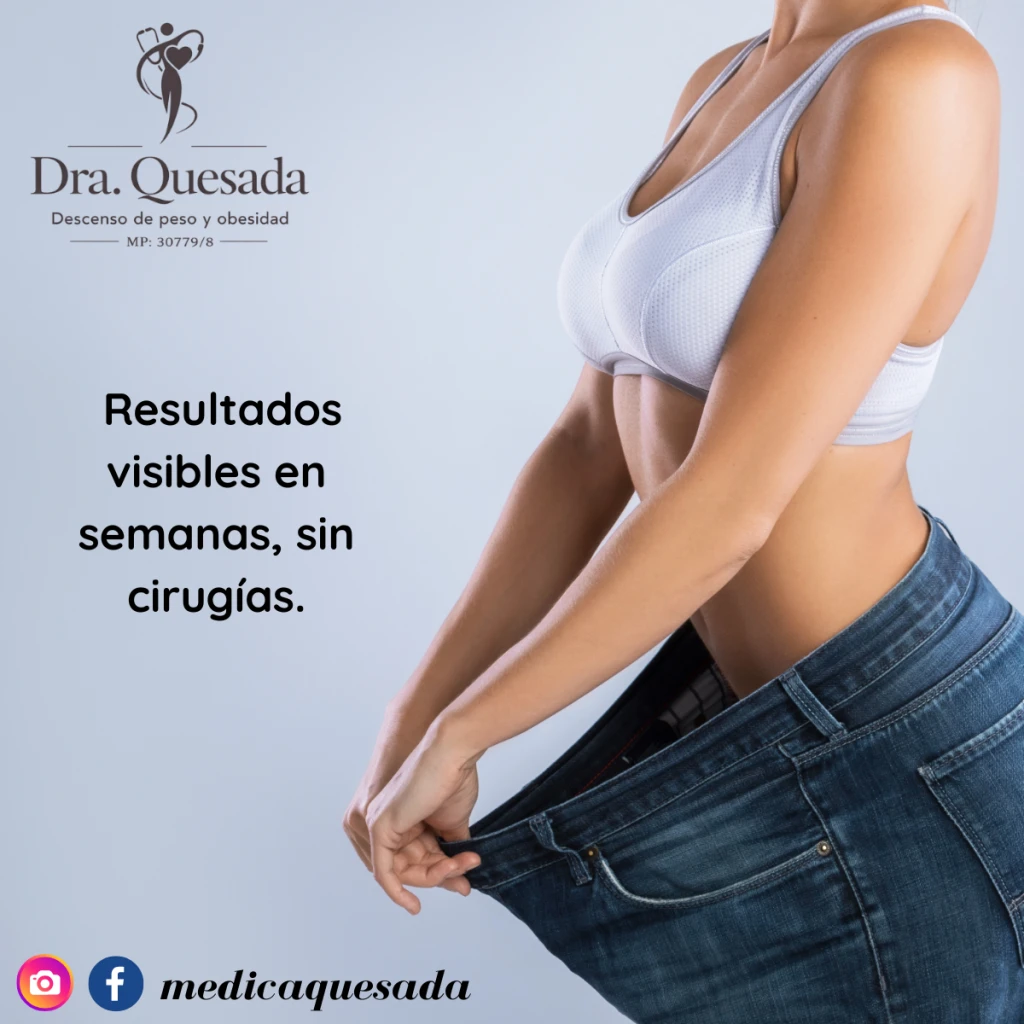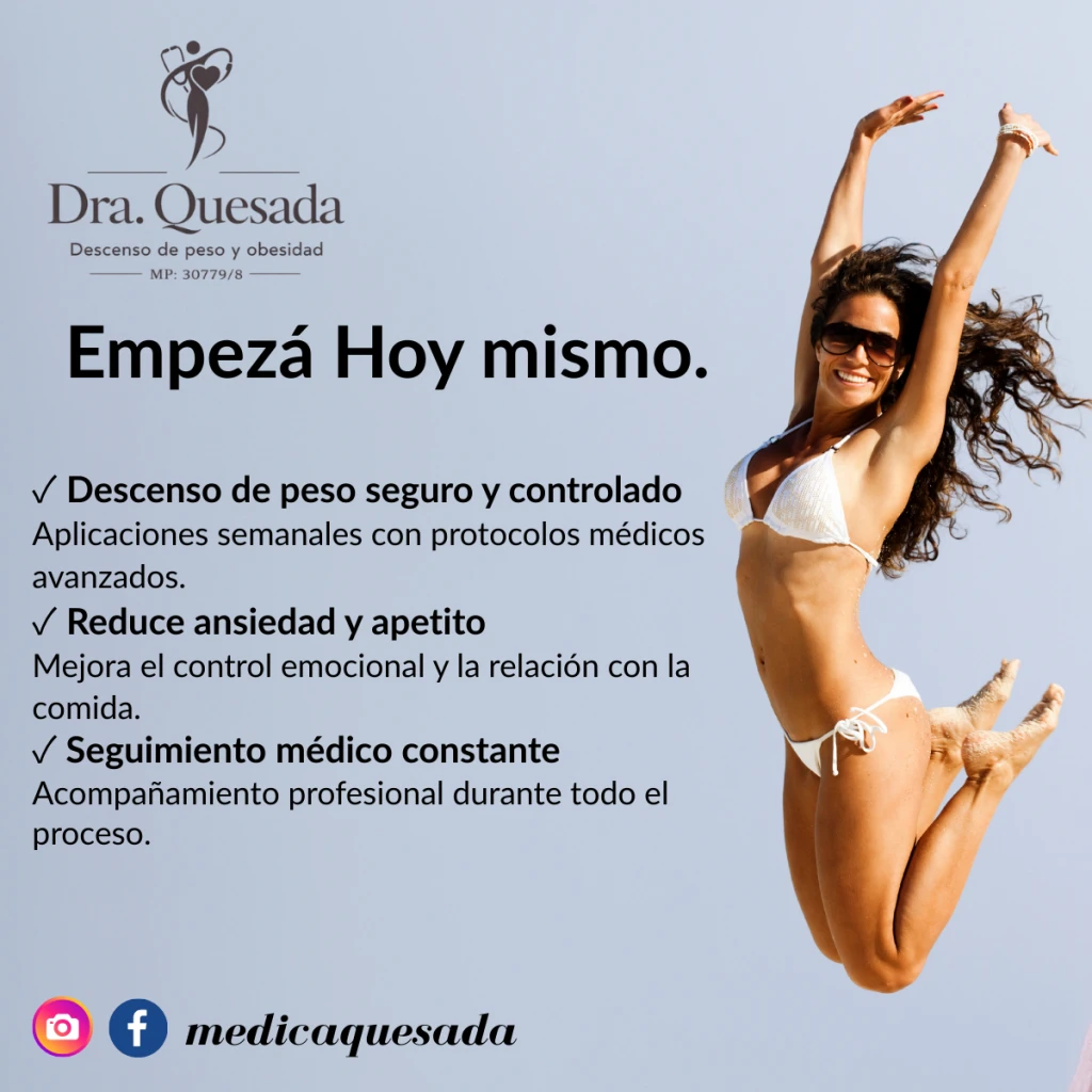 La formulación y el seguimiento están a cargo de la Dra. Quesada, médica clínica especializada en obesidad y descenso de peso, respetando criterios médicos y controles adecuados durante todo el proceso.